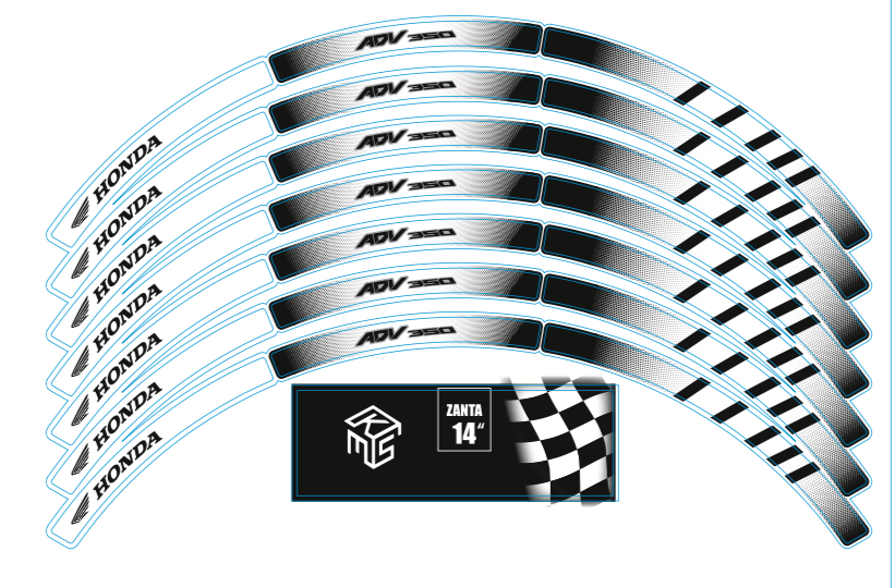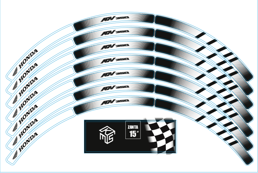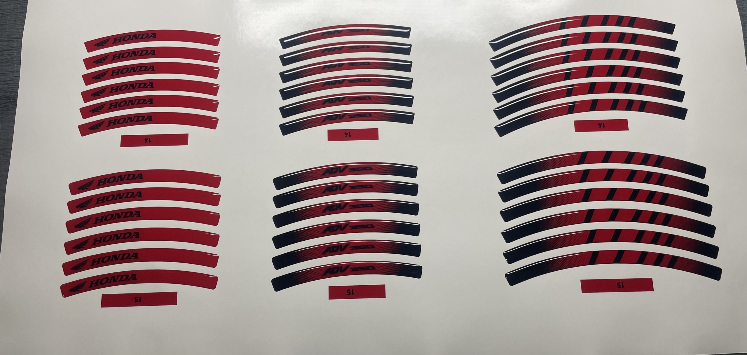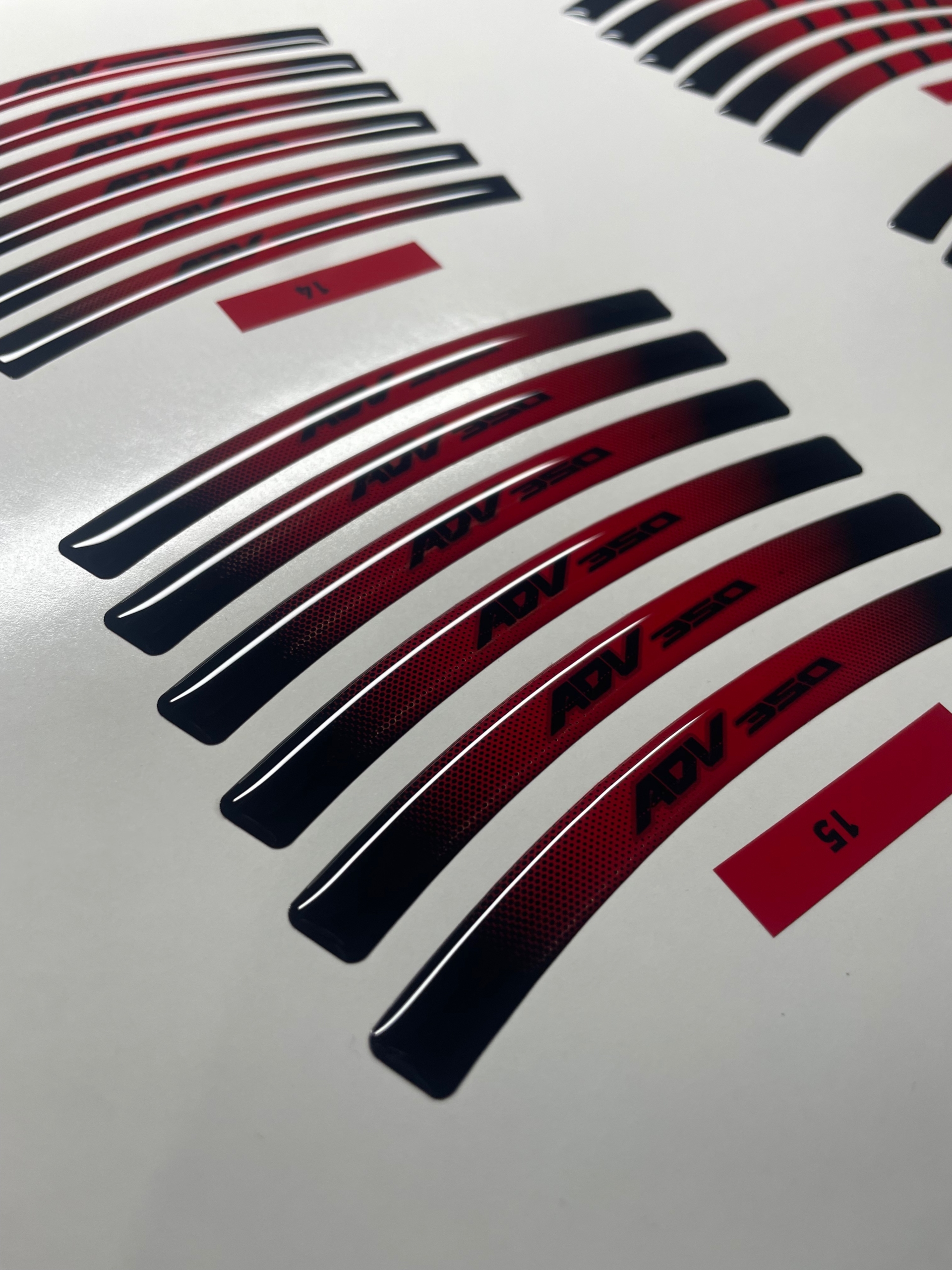 HONDA ADV 350 KIT DOMED STICKERS RIMS TYRES (3D RESIN) Αυτοκόλλητες ετικέτες 3D Ταινίες Σμάλτου για ζάντες.Αυτοκόλλητα.stickers