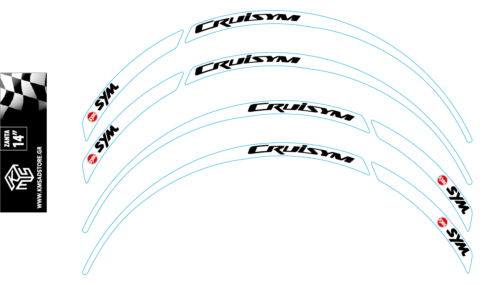 SYM CRUISYM WHITE Βέλος Αυτοκόλλητες ετικέτες 3D Σμάλτου για ζάντες.Αυτοκόλλητα